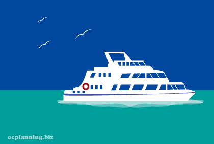 モザイクのフェリーの見えるデッキには